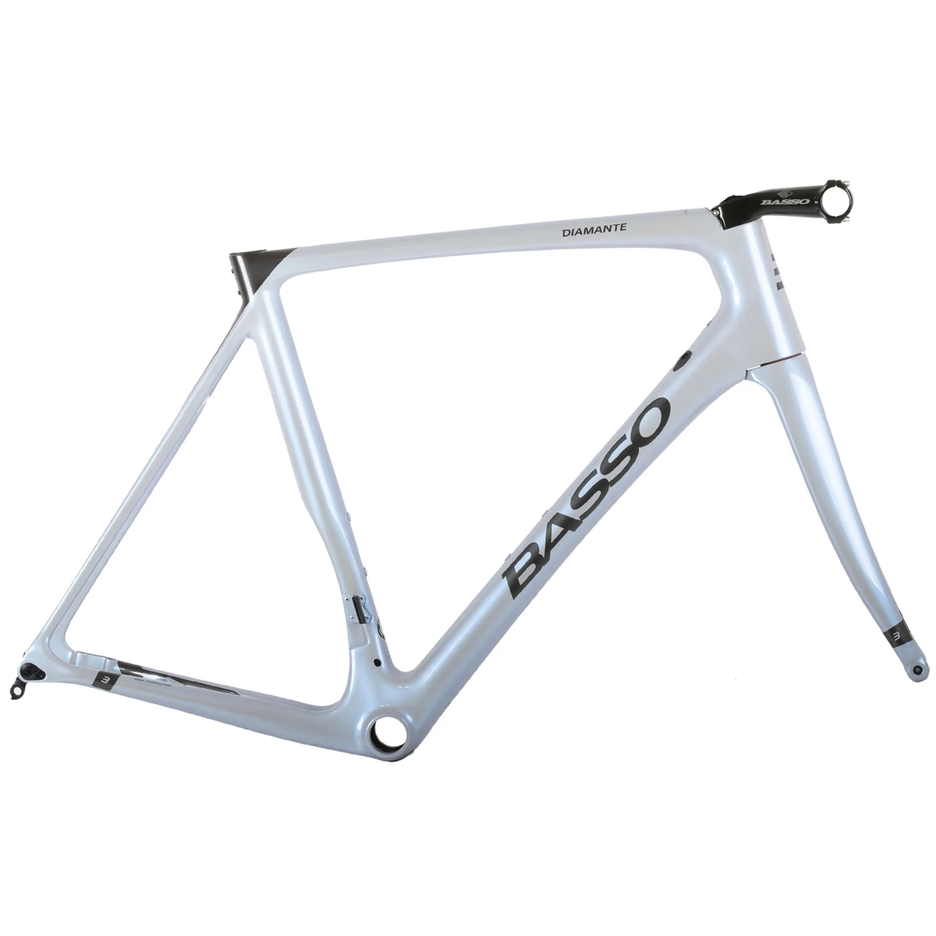 Add that to the tried, trusted and approved basso geometry an elegant front end that allows the flexible rider to achieve an extremely aggressive position while allowing the more upright rider to maintain a front end more compact in appearance. If looking good is half the battle then the diamante has already won as its every fibre is meant for moving faster and in a more efficient manner yet its form is an example of undeniable italian design and class. Functionally beautiful and beautifully functional: basso diamante. The diamante is ideal for riders looking for a frame offering speed, stunning looks and modern italian design